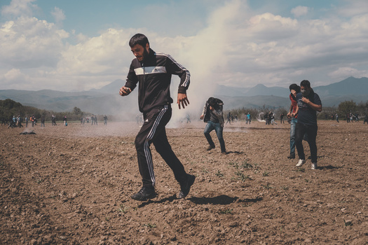 However, Paul Choy warns of the risks one is ready to take to get the right photo. For instance during his visit to a Greek refugee camp in Idomeni, angry young migrants who were frustrated from being confined since months in the camps near the Macedonian borders, decided to climb over the barriers the police had set up. The situation escalated quickly into a riot with some men throwing rocks and the police quickly threw tear gas cans and fired rubber bullets at the refugees. Paul decided to dive into the action to get some images. On one side, there were the young men and the police, and on the other side, there was the majority of refugees amassed behind, watching the scene and not taking part. The photographer says that what he witnessed was terrible: the rubber bullets and tear gas to deter the young men from crossing the border, also hit near the crowd amassed behind them.
